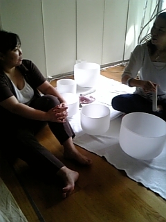 クリスタルボウル、おもしろい楽器です。 ことばで表現するのは難しいけど…もう、とーっても不思議な音なのです! クリスタルボウルの不思議な音には、ちょっとしたヒミツがあります。 みんなのカチカチに凝り固まった体やハートを、柔らかく穏やかににする、 そんなチカラを秘めています。 クリスタルボウルのチカラは科学的に検証さていて、代替医療(海外ではすでに医療分野で 副次的に取り入れられてるんですって!)やサウンドセラピー・音響療法、胎教や情操教育… いろんなところで、この音は活躍しています。 それだけじゃない、ヨガや瞑想のBGM、風水、深〜い癒し(ヒーリング・セラピー)などなど、 安堵するような時間を過ごしたり、人生を前向きに楽しんだり、 自分の内面を見つめて癒したり、自分を高めたり、 笑顔になっていく手段のひとつとして演奏されています。 もちろん、音楽楽器として演奏もされているし、まだまだいろんな可能性が広がってる。 何やらすごいものを秘めてるような気がする…。 私が初めてクリスタルボウルの演奏を聴いたとき、とても衝撃的!でした。 体がゆらゆら揺れている感覚、脱力感、だんだん体が温かくなってくるし、とても心地イイ。 気づいてみたら、今まであっちがら聴こえていた音が、いつの間にかこっちから聴こえてる(汗)。 眠っているようで…でも意識はしっかりとあるし、「なにコレ、どうなってるの〜?」っていう感じで、 もうそれはそれは、なんとも不思議で面白くって!演奏が終わってみたら、頭スッキリ!体も軽い! とーっても貴重な体験。 「クリスタルボウルに触らせてほしい!」って演奏後、ずっと奏者さんに食い下がって…(笑)。 そしてこのとき、「いつか私もクリスタルボウルを扱えるようになりたい!」そう思ったの。 …これが、私のクリスタルボウルとの出会い、原点です。 この不思議な音を、柔らかくて穏やかなひととときを、みんなに届けたい!! そして、みんなで笑顔になっていけたら、素敵だな〜って思うのです。 私は主に、上記のような「癒し」としての演奏を主軸に、その入り口として 「アート・パフォーマンス」としての演奏、ふたつの視点からの演奏活動をしています。 地域イベントに参加したり、ボランティア演奏も行っています。 みなさんも、クリスタルボウルの音、ぜひ聴いてみて!触れてみて! ピン!ときた人、一緒に演奏してみませんか? 響=クリスタルボウル= 福島 照代 |